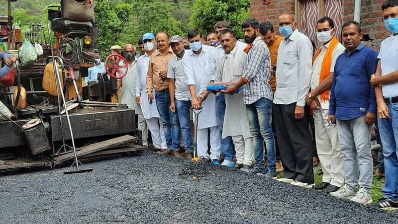 KATHUA, June 15: Col. (retd) Mahan Singh, District Development Council (DDC) Chairman, Kathua assured the people of overall development of far flung areas while kick-starting the black-topping work of a road strip from Beani bridge to Kua road near Mahanpur, today.
