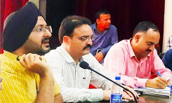 DDC Simrandeep Singh chairing a meeting in Doda on Monday.