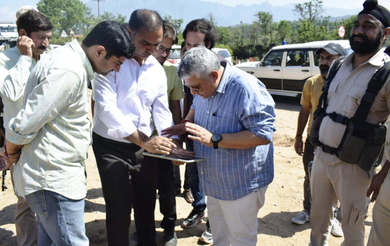 DDC Reasi Vishesh Mahajan inspecting work on expressway on Monday.