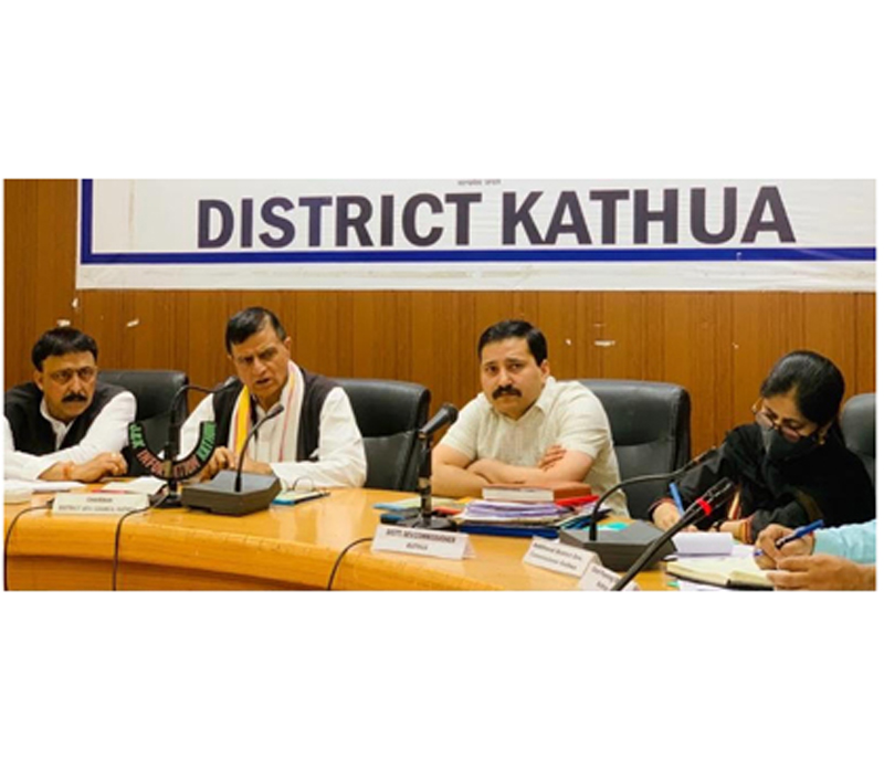 KATHUA, Apr 17: To discuss the formulation of developmental plans under District Capex Budget 2023-2024, District Development Council Chairperson Kathua, Mahan Singh, today chaired a meeting of DDC members and concerned District officers, here in the conference Hall of DC Office Complex.