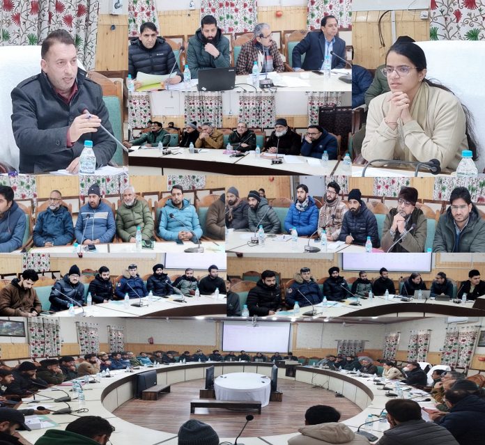 KUPWARA, Dec 17: The District Development Commissioner (DDC) Kupwara, Ayushi Sudan and Mission Director (MD), Jal Jeevan Mission J&K, Khurshid Ahmad Shah today jointly chaired a meeting of all concerned officers DC to review the progress of works under Jal Jeevan Mission (JJM) in district Kupwara.