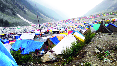 A floating population, close to 20,000 souls reach holy cave area on each peak yatra days which include about 15000 Yatries from both the routes (Chandanwari & Baltal), officers/officials conducting Yatra, Army, security agencies, teams from MRT, SDRF, Health and other departments, service providers including Tent owners and Pony Walas. Due to close proximity of two steep mountain ranges running almost parallel and Amravati stream running in-between; a limited area comprising of sloping, undulated, rugged terrain is available for developing of temporary accommodation for various security agencies, army, police, officers & officials deputed to conduct yatra smoothly, pitching of tents by service providers, Langars for providing free food, health care facilities, helipads and other facilities. The weather in the area remains highly unpredictable with frequent rain and snowfall with night temperature often dipping to sub-zero range.