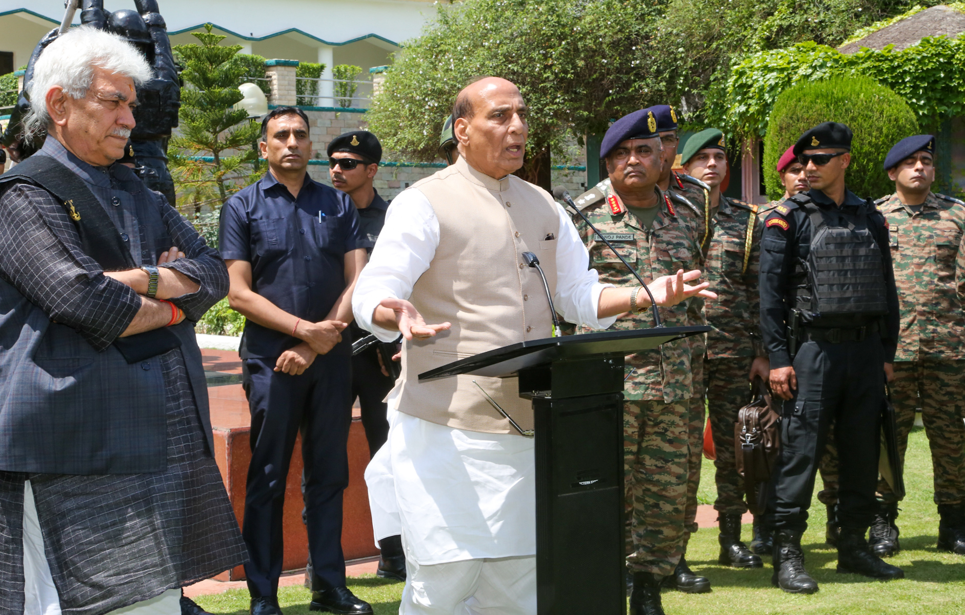 Singh, accompanied by Army chief General Manoj Pande and Jammu and Kashmir Lt Governor Manoj Sinha, reached Ace of Spades Division headquarters in Rajouri after a brief stopover in Jammu, also interacting with the troops engaged in the ongoing operation against terrorists, the officials said.