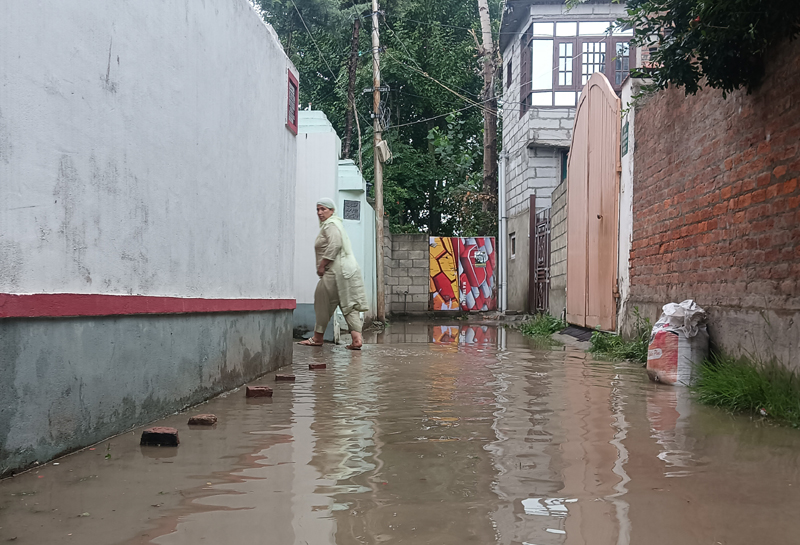 Srinagar, July 17: Residents of Imam-e-Hae Lane in the Degdarhar area of Zoonimar expressed their strong dissatisfaction with the Srinagar Municipal Corporation (SMC) today, accusing the authorities of failing to provide them with an effective drainage system. As a result, the road leading to their residential houses remains waterlogged, causing daily hardships for the residents.