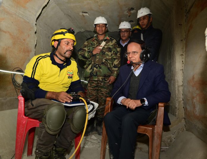 Union Home Secretary Ajay Kumar Bhalla and Uttarakhand Chief Secretary SS Sandhu along with Pramod Kumar Mishra inspected the work inside the tunnel.