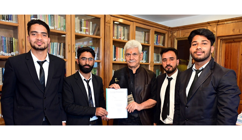 SRINAGAR, May 18: Representatives of Youth Convention J&K headed by its President Suhail Farooq today called on Lieutenant Governor Manoj Sinha at Raj Bhawan and briefed him about their endeavours under Green India Mission.