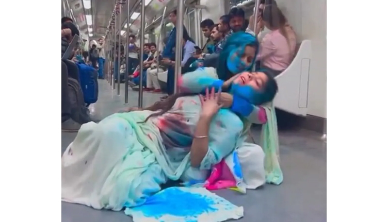 NEW DELHI, Apr 10 : The Delhi Police has arrests two women, who were allegedly involved in playing Holi and shooting their act for making a reel in metro train, officials said on Wednesday.