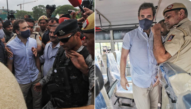 Other Congress MPs at the Vijay Chowk protest site were detained and taken away in separate police buses.