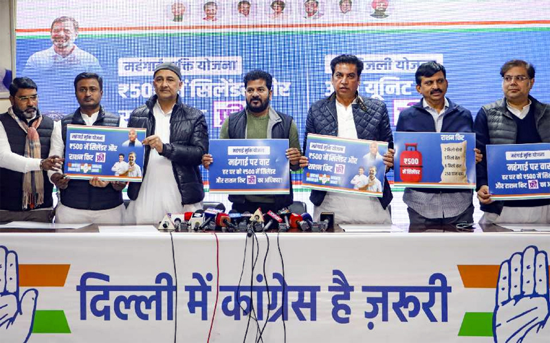 NEW DELHI, Jan 16: The Congress on Thursday said it would give Rs 500 LPG cylinder, free ration kits, and free electricity up to 300 units to the city residents if voted to power in Delhi.