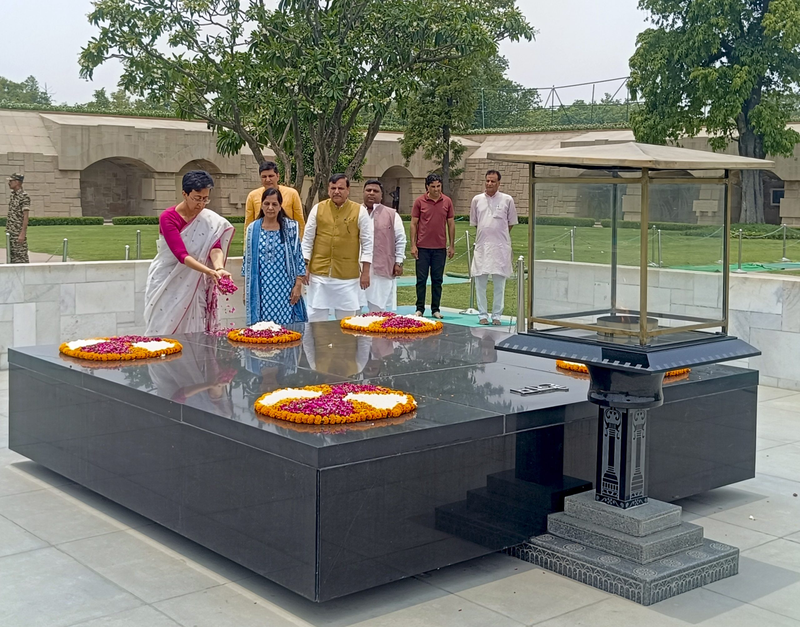 Earlier, Atishi, accompanied by Sunita Kejriwal, Singh, Bharadwaj and other leaders paid tributes to Mahatma Gandhi at Rajghat before heading to Bhogal.