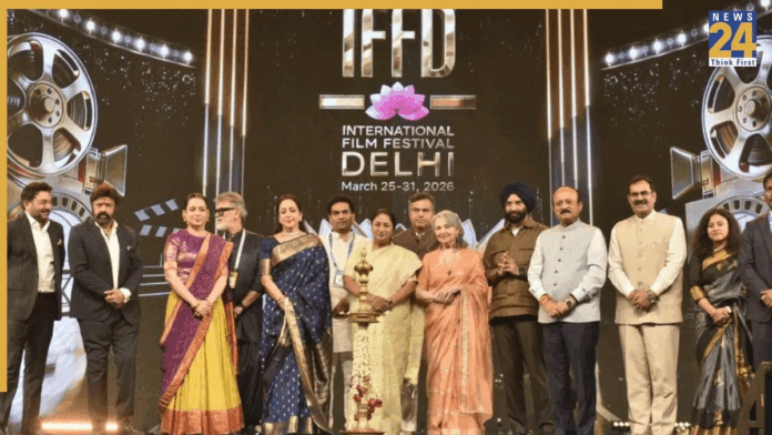The inaugural International Film Festival Delhi, or IFFD, concluded March 31 at Bharat Mandapam with considerable spectacle: Grammy-winning composer Ricky Kej conducting an orchestral fusion that drew standing ovations, lifetime achievement honours bestowed on Sharmila Tagore, Dharmendra, and Nandamuri Balakrishna, and a closing ceremony that mixed Bollywood celebrity with nationalist cultural pageantry. The festival recorded participation from over 100 countries, with more than 2,100 entries and 30,000 registrations, screening over 125 films from 47 countries. By the metrics of a debut, it was not unimpressive.