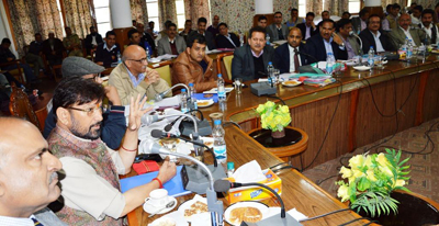 Minister for Forests, Ch Lal Singh chairing a high level meeting at Srinagar on Thursday.