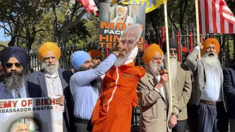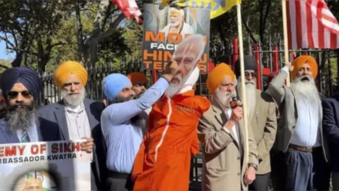 NEW YORK, Oct 19: Demonstrators who blame the Indian government for a murder-for-hire scheme targeting a prominent Sikh separatist leader living in New York City beat an effigy of the country’s Prime Minister outside a Manhattan courthouse on Friday after a hearing for a man charged in the foiled plot.