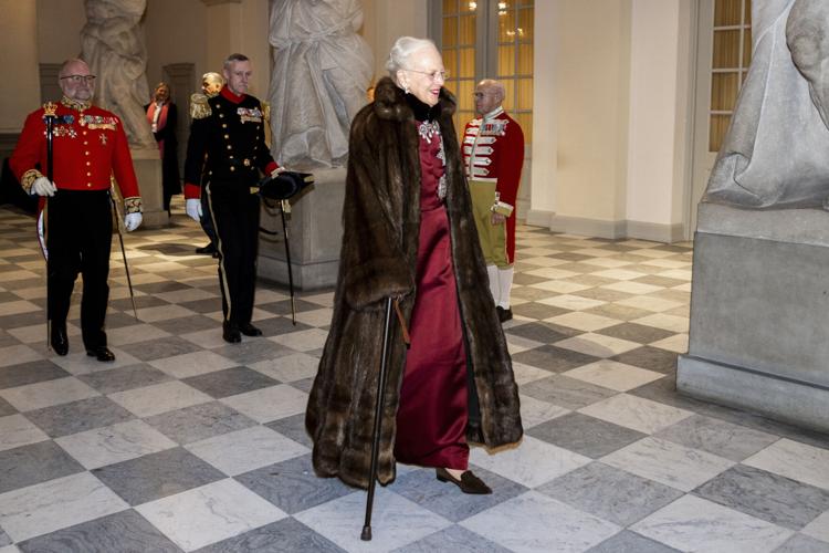 Margrethe rode in the so-called Gold Coach — pulled by six white horses — that is used when the monarch rides from the royal residence at the Amalienborg Palace to the Christiansborg Palace during the traditional New Year’s fete with officers from the Armed Forces, among others.