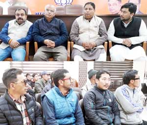 JAMMU, Dec 4: Deputation from Zanskar led by youth activist Murtaza Aarzoo Rizvi visited BJP Headquarter, Trikuta Nagar to meet BJP State president & MLA, Sat Sharma, State general secretary (Org.) Ashok Kaul, MLC Ch. Vikram Randhawa and Vice-Chairperson Balbir Ram Rattan to discuss their various issues related to development of region including its road connectivity and other local issues.