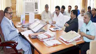 Deputation of Industries Assocation Kathua during a meeting with Deputy Chief Minister Dr Nirmal Singh at Srinagar on Tuesday.