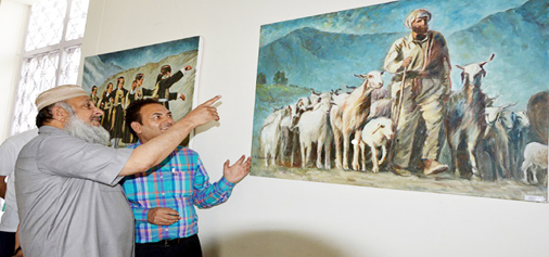 Deputy Chairman, Legislative Council, Jahangir Mir evincing keen interest in a painting at Kala Kendra on Thursday. By Daily Excelsior - April 21, 2016 Share FacebookTwitterWhatsAppPinterestLinkedinCopy URLTelegramEmailTumblrReddItPrintKoo Dignitaries witnessing cultural programme. Deputy Chairman, Legislative Council, Jahangir Mir evincing keen interest in a painting at Kala Kendra on Thursday. Follow our WhatsApp channel