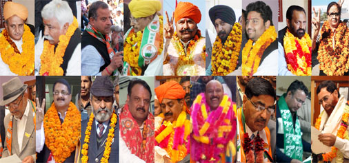 Deputy Chief Minister and Congress leader Tara Chand (Chhamb), Planning Minister and NC leader Ajay Sadhotra (Marh), BJP MLA Ashwani Sharma and Congress candidate Gulchain Singh Charak (both Bishnah), NC leader Dharamvir Singh Jamwal (Jammu West), NC candidate Surinder Singh Bunty (Gandhi Nagar), PDP leader Bharat Choudhary (Jammu East), BJP rebel Chaman Lal Kanaithia (Chhamb) and NC nominated MLA Bimla Luthra (Jammu East) while filing their nomination papers on Wednesday.