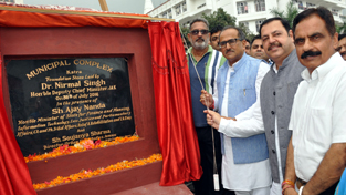 Deputy Chief Minister Dr Nirmal Singh inaugurating Municipal Commercial Complex at Katra on Saturday.