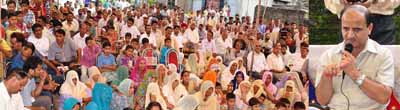 Deputy Chief Minister Tara Chand addressing public meeting at Jammu on Sunday.