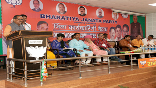 Deputy CM, Dr Nirmal Singh addressing BJP Jammu district Working Committee meeting at Trikuta Nagar on Thursday