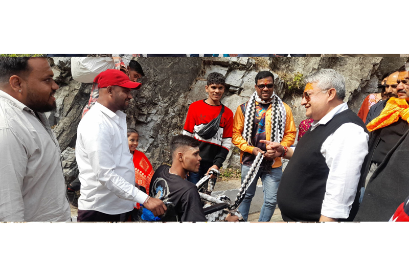 Deputy Commissioner Reasi Vishesh Mahajan interacting with devotees on Wednesday.