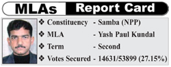 Mr Kundal is among quite a few MLAs of Jammu who despite the Amarnath land row agitation managed to turn the tide in his favour during the 2008 Assembly poll by retaining the seat for himself as well as his Party.
