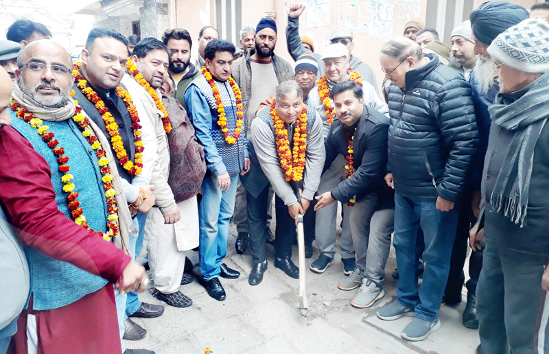 JAMMU, Dec 27: Former Minister and Ex-MLA Jammu West, Sat Sharma (CA) started construction works of lane at Jawahar Nagar area of New Plot, Ward 16. Sharma was also accompanied by a large number of people including State spokesperson, BJP, Balbir Ram Rattan, district president, Munish Khajuria, State publicity secretary, Ajay Vaid, Mandal president, Raveesh Mengi, Jammu Municipal Corporation (JMC) officials, local residents and political activists of the area.