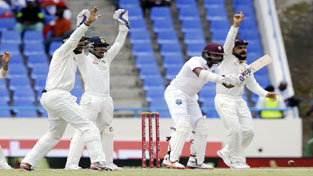 Devendra Bishoo survives an lbw appeal on 3rd Day of 1st Test match against India at Antigua on Saturday. By Daily Excelsior - July 23, 2016 Share FacebookTwitterWhatsAppPinterestLinkedinCopy URLTelegramEmailTumblrReddItPrintKoo Devendra Bishoo survives an lbw appeal on 3rd Day of 1st Test match against India at Antigua on Saturday. Devendra Bishoo survives an lbw appeal on 3rd Day of 1st Test match against India at Antigua on Saturday. Follow our WhatsApp channel