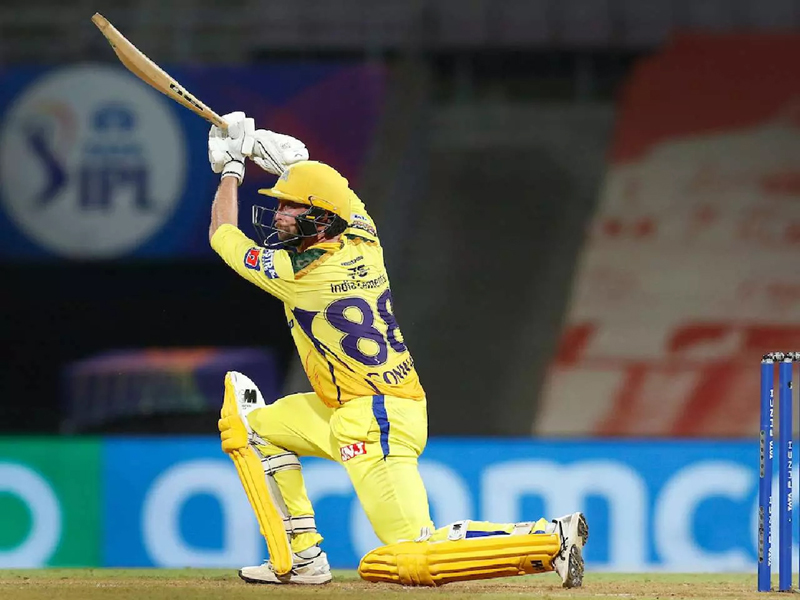 Devon Conway playing a shot during his knock of 87 runs against Delhi Capitals at Navi Mumbai on Sunday.