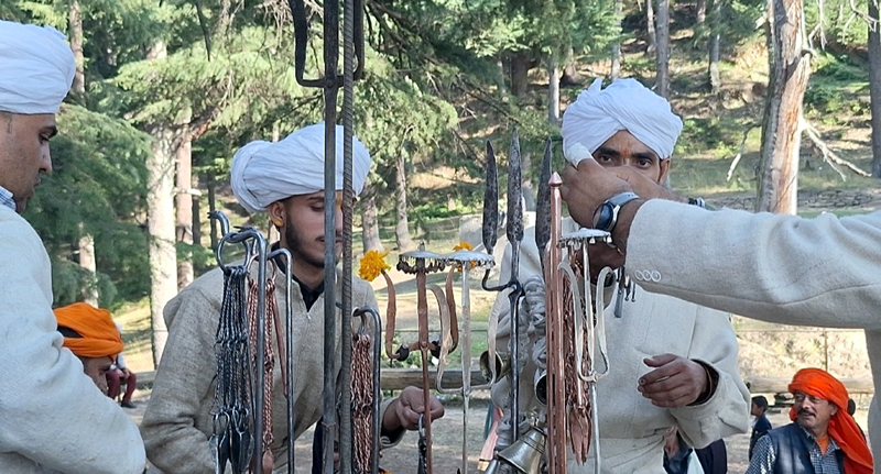 Devotees during Malcha festival in Bhadarwah on Sunday.