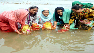 Devotees of Maa Vaishno Devi immersing Kshetri (Saakh Mata) in Tawi river on the conclusion of Navratra festival.