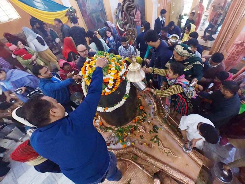 Devotees offer water and flowers on Shivlingam at Ranbireshwar Temple in Jammu on Maha Shivratri. -Excelsior/Rakesh By Daily Excelsior - March 9, 2024 Share FacebookTwitterWhatsAppPinterestLinkedinCopy URLTelegramEmailTumblrReddItPrintKoo Devotees offer water and flowers on Shivlingam at Ranbireshwar Temple in Jammu on Maha Shivratri. -Excelsior/Rakesh Devotees offer water and flowers on Shivlingam at Ranbireshwar Temple in Jammu on Maha Shivratri. -Excelsior/Rakesh Follow our WhatsApp channel