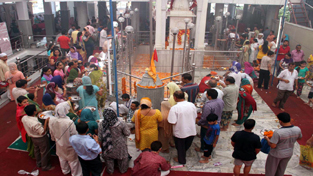 Devotees paying obeisance at Mata Kheer Bhawani Temple, Bhawani Nagar on Friday. -Excelsior/Rakesh