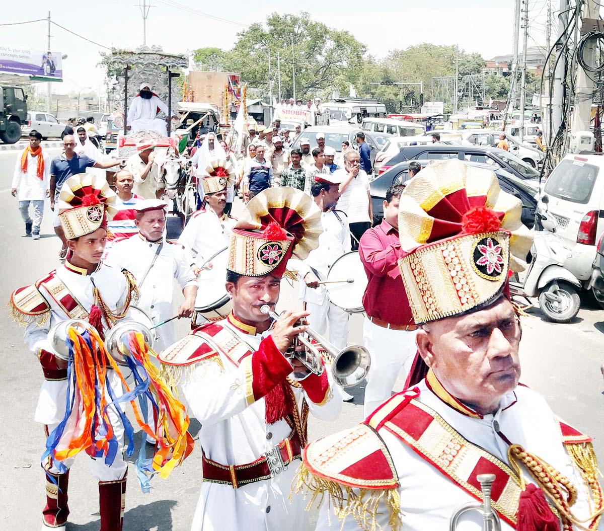Devotees taking out a procession on Kabir Jayanti in Jammu on Monday.