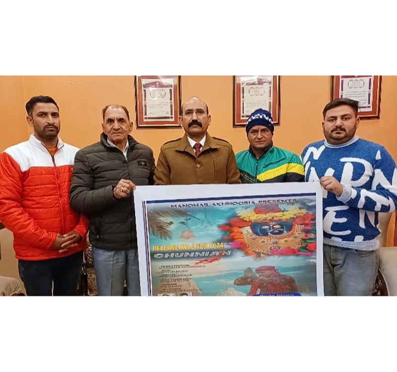 AKHNOOR, Feb 4: During a function here today SSP Mohan Lal, staff officer to ADGP Railways released devotional song ‘Chunniah’ produced and sung by Manohar Akhnooria-a local of Sunail village in Akhnoor.