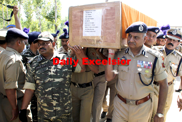 DG Police and DG CRPF among others carring the coffin of CRPF personal who were killed in pampore shoot out.ExcelsiorShakeel-ul-Rehman
