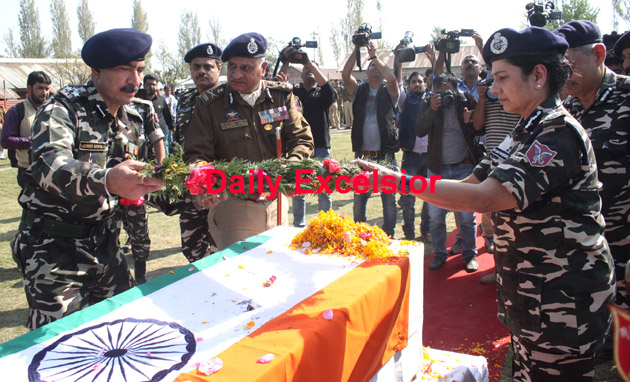 DG SSB laying floral on coffin of SSB jawan killed in Srinagar militant attack during wreath laying ceremony.ExcelsiorShalkeel-ul-Rehman