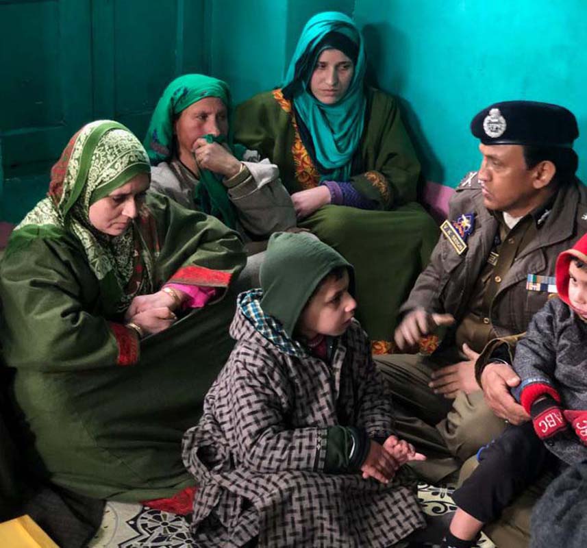 DG visited families of fire fighters namely Firdous Ahmed Bhat, resident of YK Pora, Qazigund, Kulgam and Fayaz Ahmed Parray, Selection Grade Fireman, resident of Village Chandyan Pajan, Kulgam who sacrificed their lives while on duty when a snow avalanche hit Fire and Emergency Station Jawahar Tunnel (North Portal) on February 7 this year.