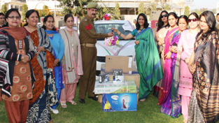 DGP, Ashok Prasad, Chairperson Police Parivar Kiran Prasad distributing prizes to winners of Raffle Draw at Gulshan Ground on Saturday.
