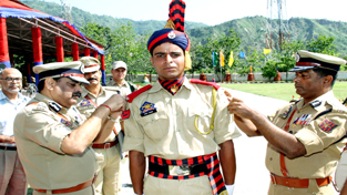 DGP, Ashok Prasad decorating rank on Constable Umar Farooq at STC Talwara on Monday. By Daily Excelsior - July 1, 2013 Share FacebookTwitterWhatsAppPinterestLinkedinCopy URLTelegramEmailTumblrReddItPrintKoo DGP, Ashok Prasad decorating rank on Constable Umar Farooq at STC Talwara on Monday. Follow our WhatsApp channel