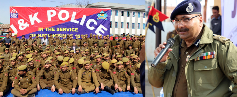 DGP Dilbag Singh addressing officers and jawans of Jammu and Kashmir Police.