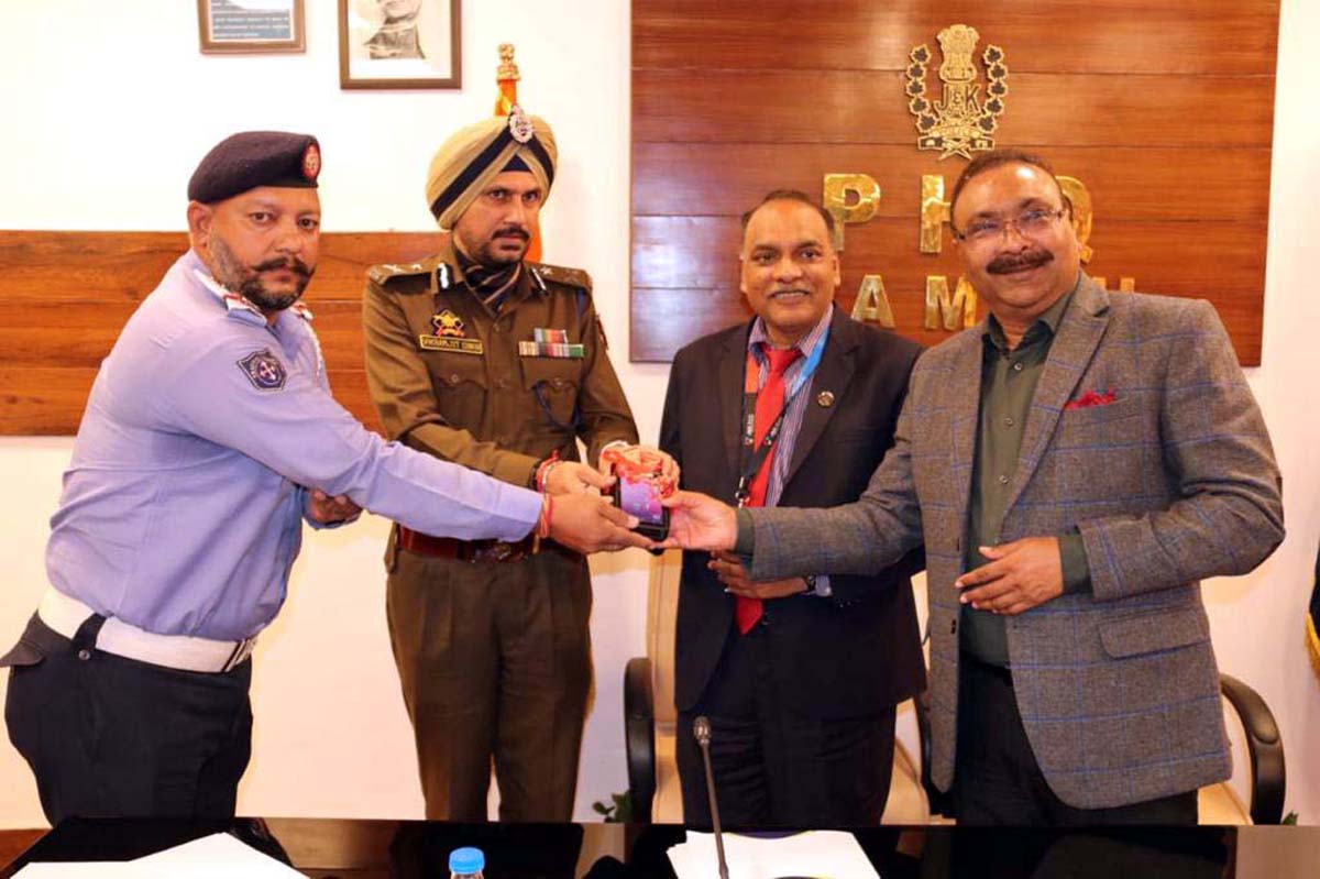 DGP Dilbag Singh along with MD/CEO of J&K Bank Baldev Prakash and other senior officers launching 100% e-challan system in J&K.
