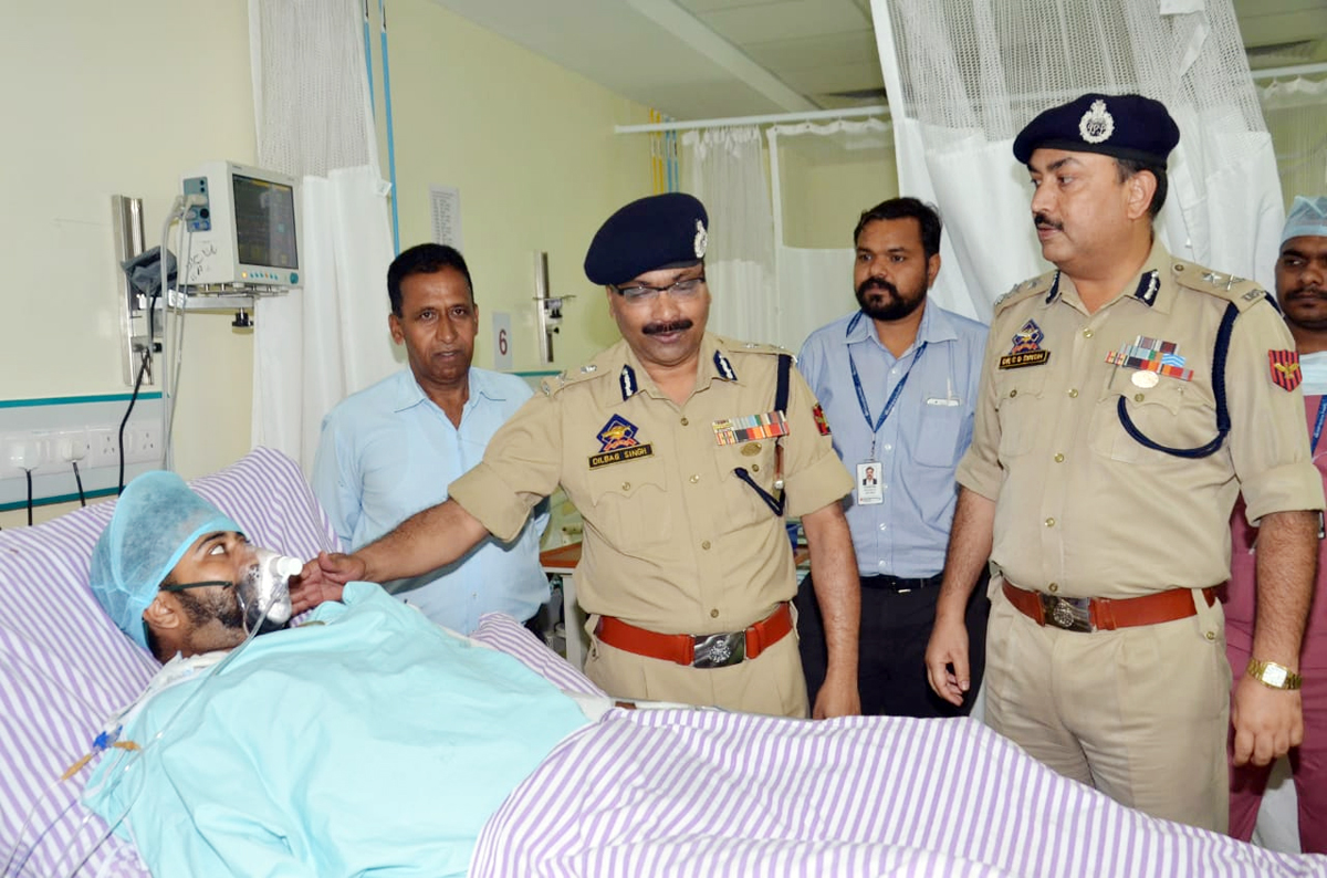 DGP Dilbag Singh inquiring condition of an injured security personnel at Narayana hospital in Kakryal, Katra on Sunday.