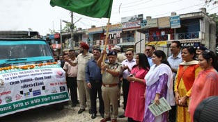 JAMMU, May 15: Director General of Police (DGP) Dr SP Vaid accompanied by Chairperson Police Wives Welfare Association (PWWA) Bharti Vaid flagged off campaign vehicle for 3-day ‘Clean Jammu-Clean Tawi’ intensive awareness initiative at Bikram Chowk here today.