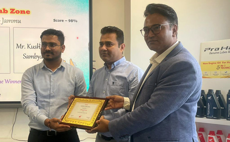 The award was presented by Mohammed Hanif, Zonal Manager Service, Punjab Zone to Kush Sambyal, Service Manager, Diamond Honda, at the Mohali office of Honda Motorcycle and Scooter India (HMSI).