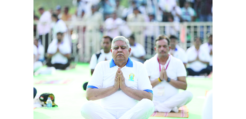 Quoting the prime minister to highlight its benefits, Dhankhar said, “Yoga is a zero budget health assurance.”