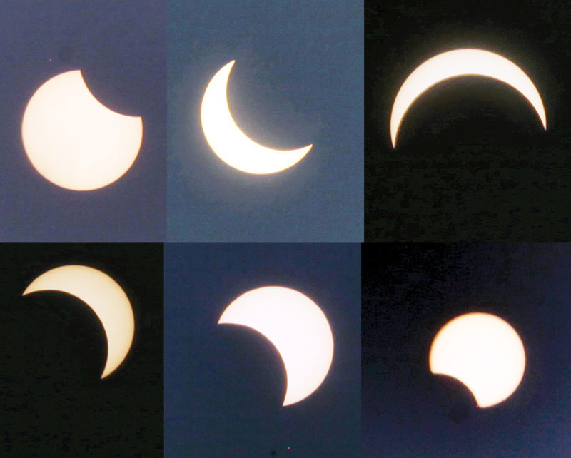 Different stages of solar eclipse as witnessed in Jammu on Sunday. — Excelsior/Rakesh By Daily Excelsior - June 22, 2020 Share FacebookTwitterWhatsAppPinterestLinkedinCopy URLTelegramEmailTumblrReddItPrintKoo Different stages of solar eclipse as witnessed in Jammu on Sunday. -- Excelsior/Rakesh Different stages of solar eclipse as witnessed in Jammu on Sunday. — Excelsior/Rakesh Follow our WhatsApp channel