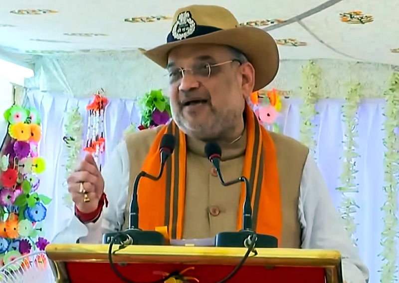 Union Home Minister Amit Shah addressing during the inauguration of six modern Floating BOPs and Boat Ambulance equipped with state-of-the-art facilities to enhance the surveillance in inaccessible areas of Sunderbans, in Kolkata on Thursday. (UNI)