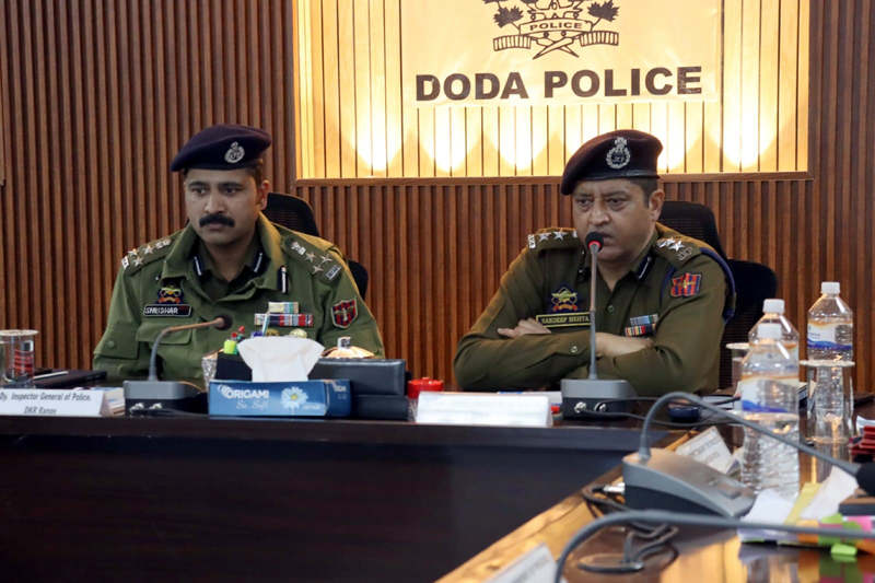DODA, Nov 28: Deputy Inspector General of Police, DKR Range Shridhar Patil, chaired a comprehensive crime and security review meeting at the District Police Office, Doda. The meeting was attended by all supervisory officers and SHOs of the district.